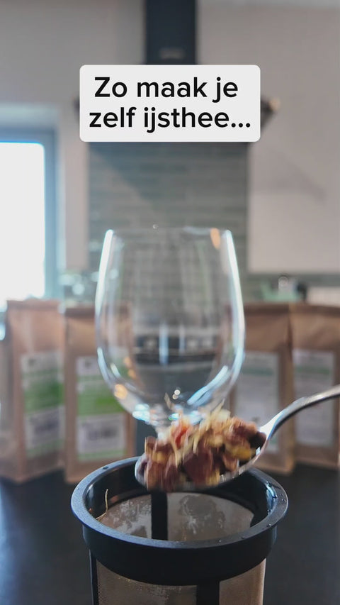 Je krijgt ook een kaartje met tips om makkelijk zelf ijsthee te maken én als je het pakket ten laatste 16/3 aankoopt, krijg je in april gratis toegang tot de nieuwe online cursus 'Zelf ijsthee maken'.